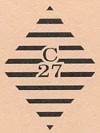 Description - PM type 12 (JC-MN) singular diamond with bars varying in size, thickness of bars, and spacing, parallel to the short diagonal. The key aspect of this main type is a letter C combined with numeral inset.